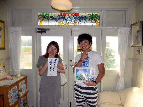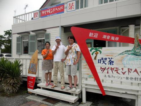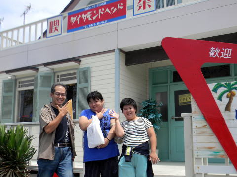 風の噂でダイヤモンドヘッドがあると聞いて訪ねてくれたのは 東京からお越しの 原 勇希さん♪と 塩川 杏奈さん♪です。 潮音Tシャツ是非着て下さいね。 そして古くなったらまた買ってね(笑) |