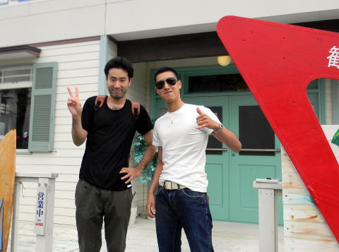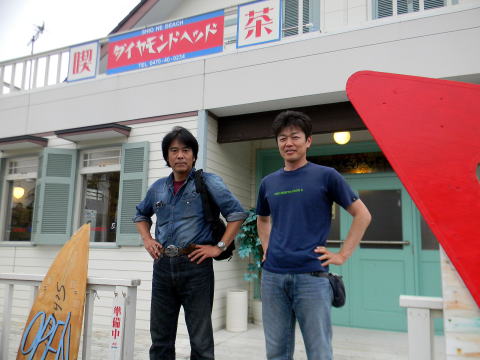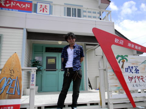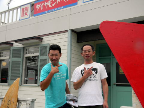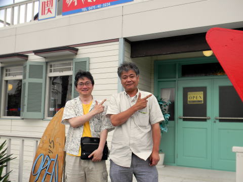 閉店前はよく遊びに来てくれた菊間君。 ちょうど一年前からサーフィンを始め、だいぶ乗れるように なったそうです。 現在勤務している鴨川グランドホテルでもやっと後輩が入り 少々余裕ができましたようで、ちょぴり嬉しそうな菊間君でした。 |