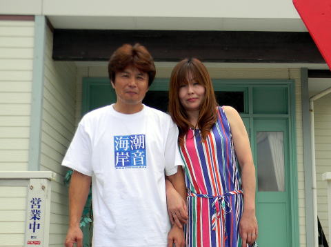 昨年は閉店中で来られなかったです・・とネットで買って いただいた潮音海岸Tシャツを着て来店していただいたのは 東金から来ていただいたイノセさんでした。 |