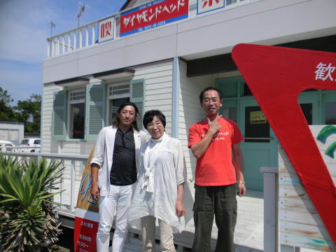 川崎から来ていただいた倉持さん♪と、まいさん♪の お二人です。 1年間休んでいたのでホントにお久しぶりです。 倉持さんが最初に来られたのはOPENした年の8月でしたね。 自前で製作した潮音海岸Tシャツで入って来られたのを 覚えています。 |