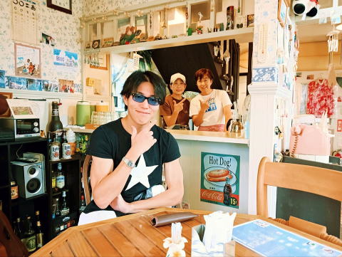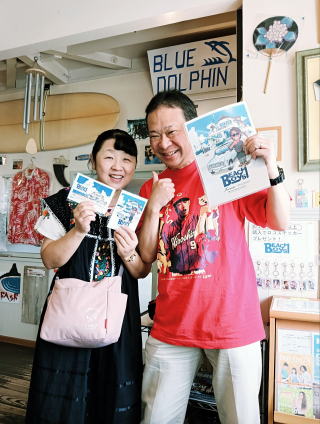 東京あきる野市から来てくれた りくと君(左) と えいた君(右) りくと君は大の反町君ファン GTOが好きでBEACHBOYSを見て さらにハマったそうです。 今日は電車とヒッチハイクで 潮音海岸まで行った後、カフェ・ダイヤモンドヘッド へ気のいいオジさんの車に載せてもらい 立ち寄ってくれました。 えいた君もりくと君の影響で2話までビデオを 観ましたとの事。 家に戻ったら是非全話見てくださいね~! |