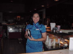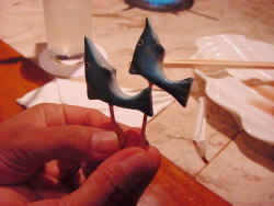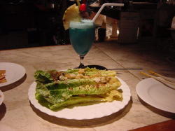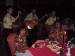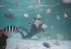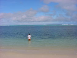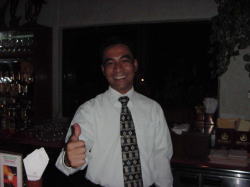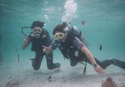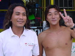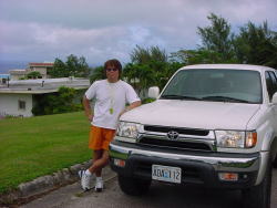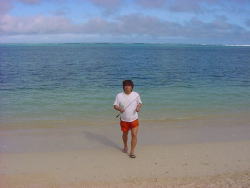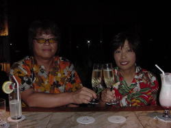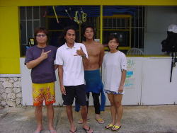 つい時間を忘れて見とれてしまい慌ててフロントへ・・。 明日、明後日のオプショナル・ツアーを永井さんに頼み込み、待たせてしまったトヨタレンタカーのスタッフと共にホテル日航にあるオフィスへと向かう。 今回は手軽なRAV4を予約していたのに数日前から車の調子が悪いため急きょ車種変更をして下さいとの申し入れに、ムムもしかして・・・予感的中!RAV4より2廻りも大きいハイラックス・サーフに変更。しかもレンタル代は同じときたらもう超ラッキー!! 二つ返事で了解しサインしたら逃げるようにオフィスを後にした(笑) ドライブがてらガラパン市街まで足を延ばしサイパンに来たら必ず1度は行きたいイージー・キッチンで夕食を済ませアクアに戻る。部屋のベランダからライトアップされたプールサイドを眺めビールで乾杯。 今回日本からわざわざカセットデッキを持参して毎晩ビーチ・ボーイズのサントラを聞いていました。 このシチュエーションにぴったりの局はやっぱ「水平線」でしょうね。 ![]() 1月8日(2日目) 今日はBGにとって初めての体験ダイビング。 22歳の頃溺れかけて(溺れさせた原因は私です・・。)からといういうもの全く顔を水につけられなくなってしまったBG。顔は笑ってるけど目が泳いでいる(沈んでいる・・かな?)のがよく判る。 でもこれから南の島を満喫するためには一度は経験が必要と本人も自覚・・というより覚悟を決めたらしく今回はかなりのやる気。 初めてのウエット・スーツを着てはしゃぐBG。この笑顔が最後まで続けばいいけど・・。 ![]() 午前中はプール講習とグランド・ホテル前の浅いビーチで初ダイビング。 最初はかなり手こずったけどなんとかこなし、綺麗な海の中を満喫したようなので午後は場所を替えて潜るよう説得したところやってみたいとの返事・・乗ってきた乗ってきた。 ![]() 午後はダイビング・ショップの計らいで水深が深くて超初心者にはちょっと厳しいけど比較的流れの少ないラウラウビーチでエントリーさせていただけることになった。 インストラクターの東良さんとアシストでアグスさんについていただきマンツーマンでのダイビング。 水深11mの海底にいる海老を見つけて観察していると今まで澄んでいた水が急に濁る。ふと見るとBGが足ヒレで海底の砂をかき混ぜている。どうやら頭を下にして潜れないらしい。ほとんどタツノオトシゴ状態のダイビングだったけど魚の餌付けも経験できたし、綺麗な海の中も満喫できたようなのでとりあえずこれからも続けられるかもね。 今回お世話になった東良さんは私が経験(といっても3回目ですが)した中では本当に親切・丁寧でわかりやすい指導をしてくれます。もしサイパンにいったら料金もメチャ、リーズナブルなのでぜひ声を掛けてみてください。 右:東良(ヒガシラ)さん26歳独身。嫁さん募集中。 左:アグスさん??歳 バリ島出身だそうです。「トゥリマ カシ!」 CMLC ARTHA サイパン・グランド・ホテル内 TEL:670−234−9157 URL:www.cmlc.cc Email:saipan.@cmlc.cc ![]() そしてこの日の夜、ビーチボーイズ秘話最初の大発見の扉が開くのです。 ダイビングで疲れたせいかお腹があまり空かないので食事の前に軽く飲もうということになり、アクアの中にあるVinoというバーへ直行。 このバーはharukiさんから送られてきたB・Bスペシャル編メイキング番組のビデオで見て一度来てみたかった所でもある。 メイキングの中ではこのバーのカウンターに広海くん、高井Pが手前に。春子さん、亀井P、真琴が奥にいる状況で撮影されていました。 ![]() とりあえず今日は広海くんが座っていた場所に腰を掛けカクテルを注文。 カクテルと言えば前々から気になっていたことがある。男の料理という本の中で広海君(反町)が紹介している広海スペシャルというカクテル。 彼のレシピを使ってカクテルを作るとTVで放映された「広海スペシャル」とは全く違う色のカクテルが出来上がってしまうのだ。これは私の地元にあるバーとここアクアのプールサイド・バーでレシピを渡し作ってもらったが結果は全く同じで、いずれも緑がかったメロン色のカクテルになってしまいます。 実際TVで放映された「広海スペシャル」は真っ青な色。するとふいにBGがカウンター奥のグラス置き場を指さして「あのグラスは広海スペシャルで使ったグラスだよ」と言い出した。 BGいわくあのグラスが欲しくて一人でかなり探しまくっていたので絶対間違いないとの事。 もしかしたら・・・バーテンの方は日本人でなかったので日本語が通じるかちょっと不安だったけど思い切って聞いてみたところビンゴ!! なんとこのバーテンさんはロバートさんという方ですがサイパンでカクテルコンテストにも優勝するほどの腕前の持ち主で、聞いてみるとあの広海スペシャルは私が作ったと言うではありませんか! BGと二人して思わず「うそ〜」と大声を上げてしまいました。 当然、必死になって作っていただけるよう頼み込み、出来上がった物を見て絶句。 まさにこの