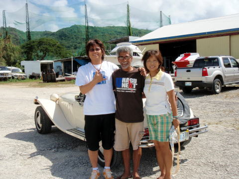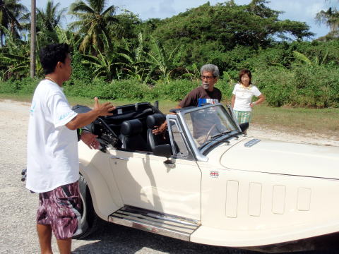 午後1時半。 MITUさんの車に乗ってビーチロードにあるレイさん宅を訪問。 今回は保険手続きが出来ていないため、公道の走行はできず 宅地内だけの試乗とあいなりました。 できれば広海君が通った道をなぞりたかったのですが仕方無い っすね。 車が見つかっただけでなく運転できるのですから万々歳です。 |