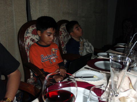 長男のロナルド君は12歳パソコン好き。 勉強もクラスでトップレベルの上、スポーツも大好きな ナイスガイです。 三男のリチャード君はやんちゃな8歳。 料理が出てくるのが遅くて眠っちゃいました(笑) |